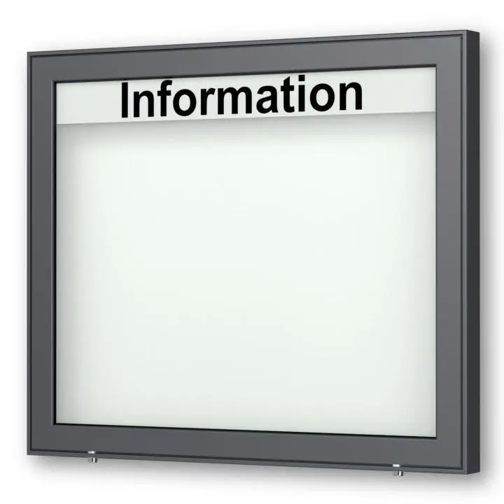 Schaukasten Planus - Wandmontage - optional mit LED Beleuchtung Standard-Formate sofort ab Lager lieferbar Gehäusetiefe 65mm Aufnahme von DIN A-4-Blätter B/H: 15 × DIN A4 • 1180 × 1130 mm Öffnung - Klappflügel mit Gasdruckfedern Verglasung - Einscheiben-Sicherheitsglas / ESG Oberfläche - anthrazit (DB 703) Beleuchtung - ohne Beleuchtung - optional mit LED-Langfeldleuchte Mit weißer Acryl-Blende - ohne Betextung Schließung - Sicherheitsschlösser unten mit je 2 Schlüsseln Montage - vorgerichtet für Wandmontage, inkl. Befestigungsmaterial Rückwand - innen weiß / außen silber - magnethaftende Rückwand inkl. 10 Magneten