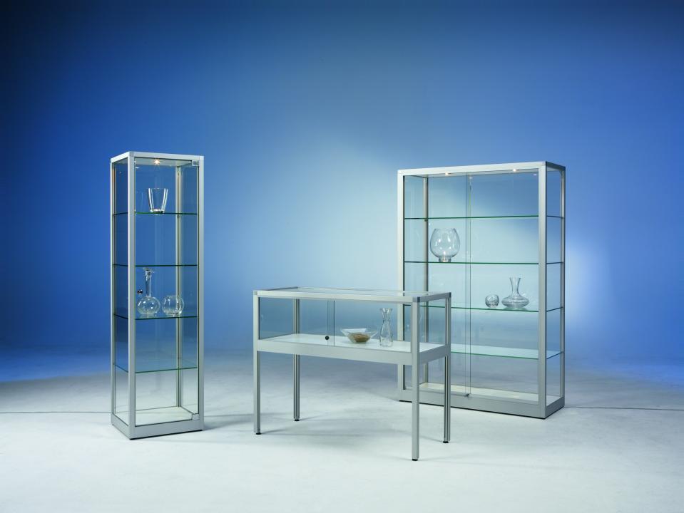 Tischvitrine aus Glas und Alu-Profil - optional mit Brandschutz