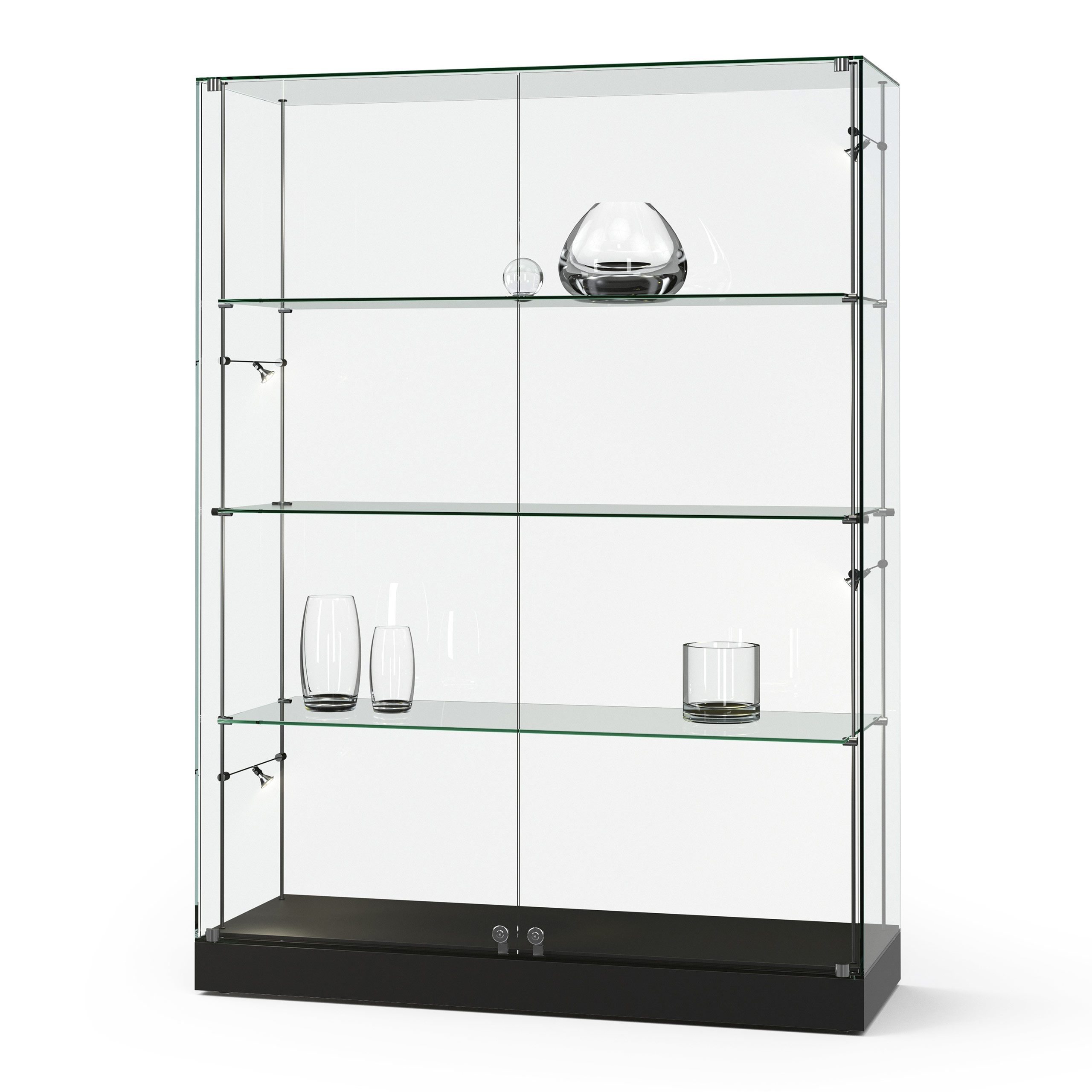 Merkmale Vitrine: Farbe schwarz, abschliessbar, mit Beleuchtung, mit Drehtüren, mit Sockel, stehend